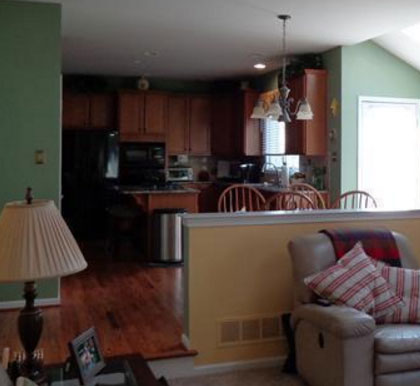 After struggling for three years with the direction she wanted her new home to go they hired me to redesign their kitchen and the adjoining family room. The request was for the design to be bright and cheerful. The only thing I had to keep was their blue sofa. Everything else was up for a change.